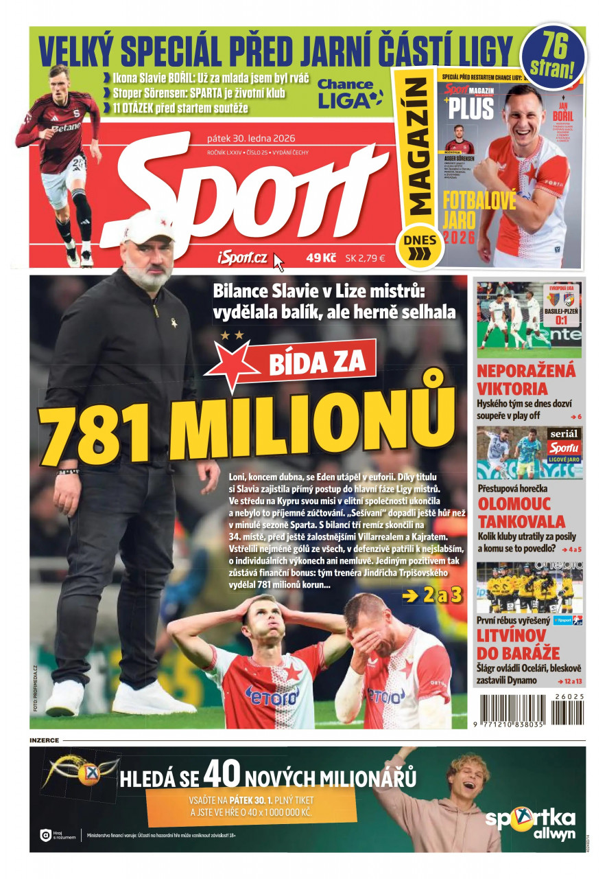 Noviny Sport vydává vydavatelství CZECH NEWS CENTER a.s., od kterého vám doporučujeme také předplatné časopisů Reflex, Nedělní Blesk, ABC a další. CZECH NEWS CENTER a.s. je nejsilnějším mediálním domem na českém trhu a oslovuje téměř šest miliónů čtenářů.
